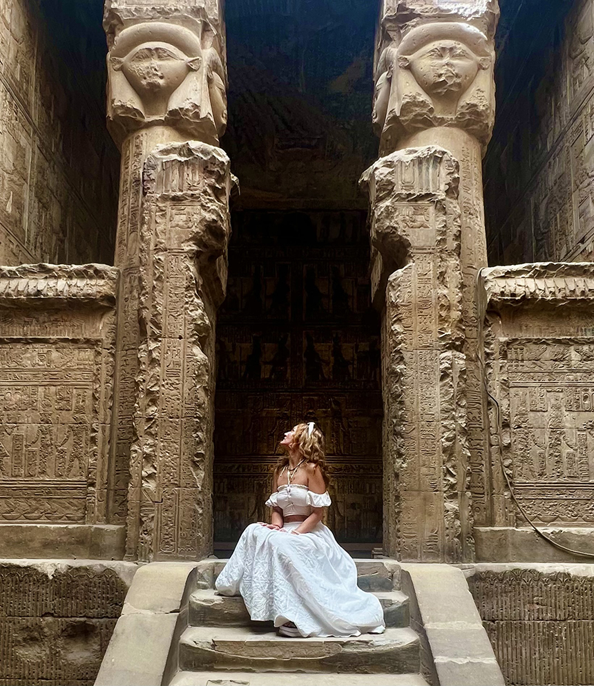De îndată ce am făcut planul acestei călătorii, am realizat ce mi se dezvăluia, de fapt. Un triunghi de aur al Egiptului. Trei puncte sacre, aliniate nu doar pe hartă, ci și energetic: Dendera, casa sacrului feminin, Abydos, casa sacrului masculin și Piramidele de la Giza, casa lui Horus, copilul divin (vizitate în ianuarie).